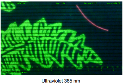 IR and UV at a time – Simultaneous activation of two light sources: IR 850 nm for examination on the monitor screen, and UV 365 nm for visual examination.