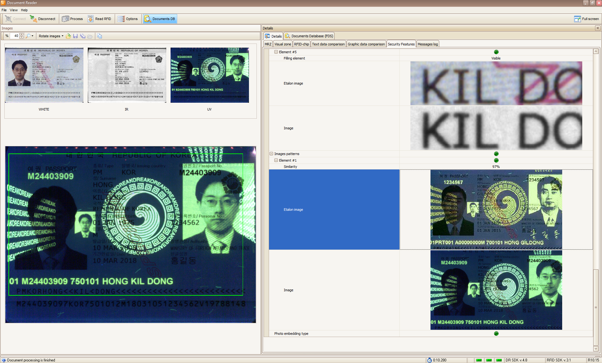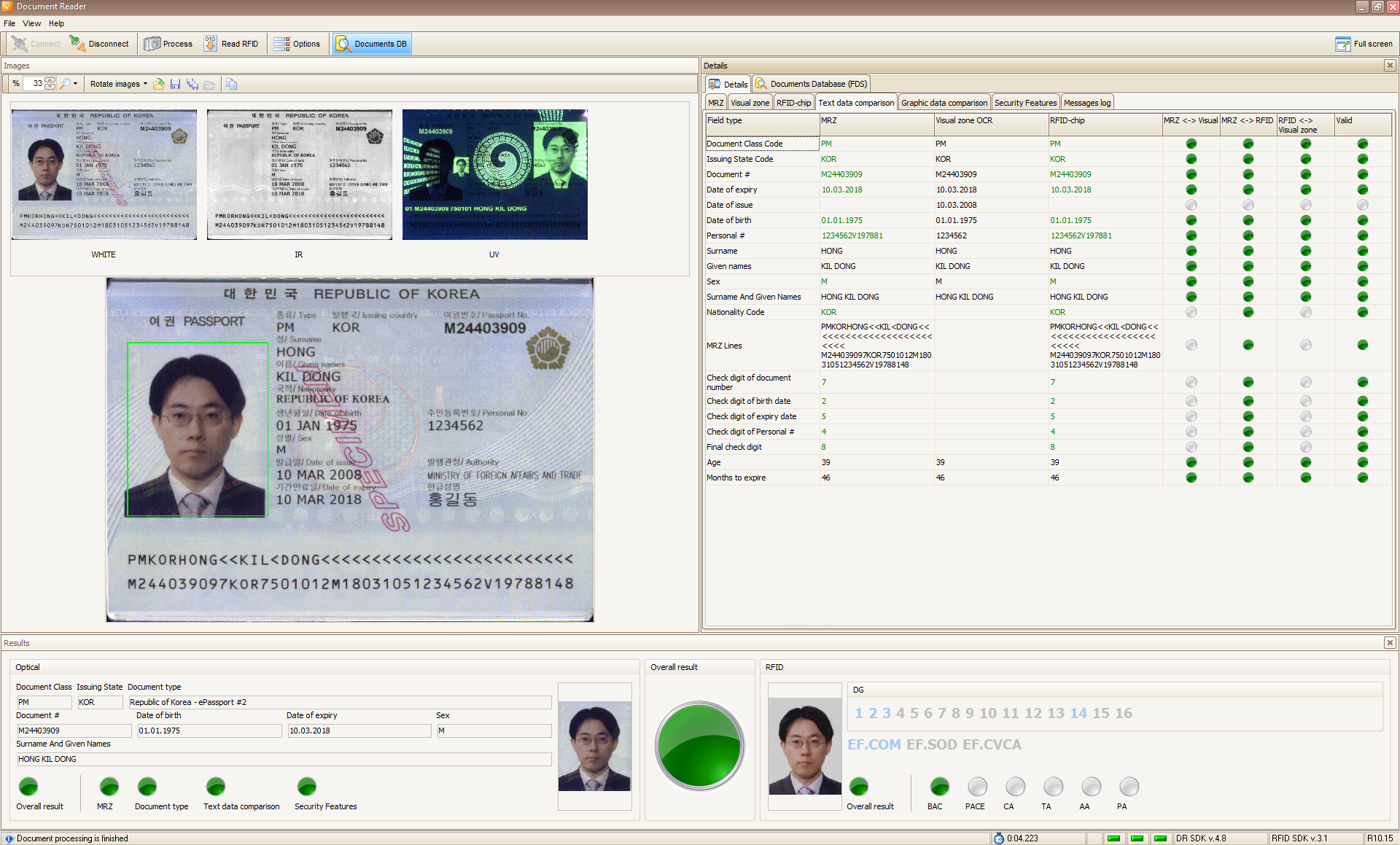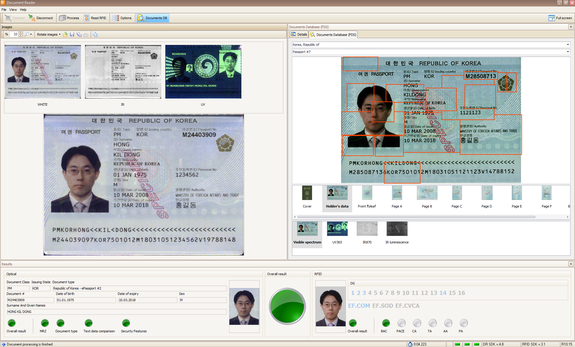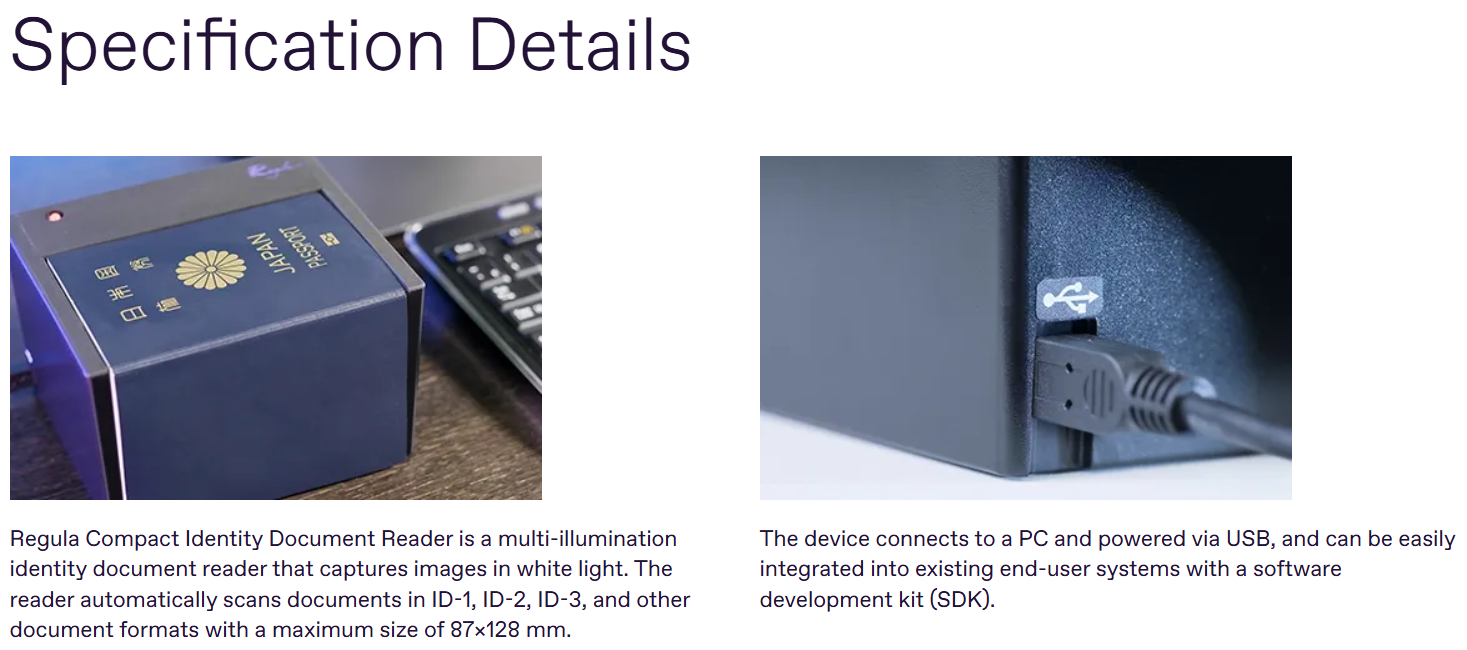 Regula’s in-house software, delivered with the device efficiently extracts data from visual and machine-readable zones, processes data from RFID chips, reads barcodes, and cross-compares the obtained data to spot fraud. Regula Compact Identity Document Reader is flexible and customizable, which makes integration with third-party systems smooth and easy.