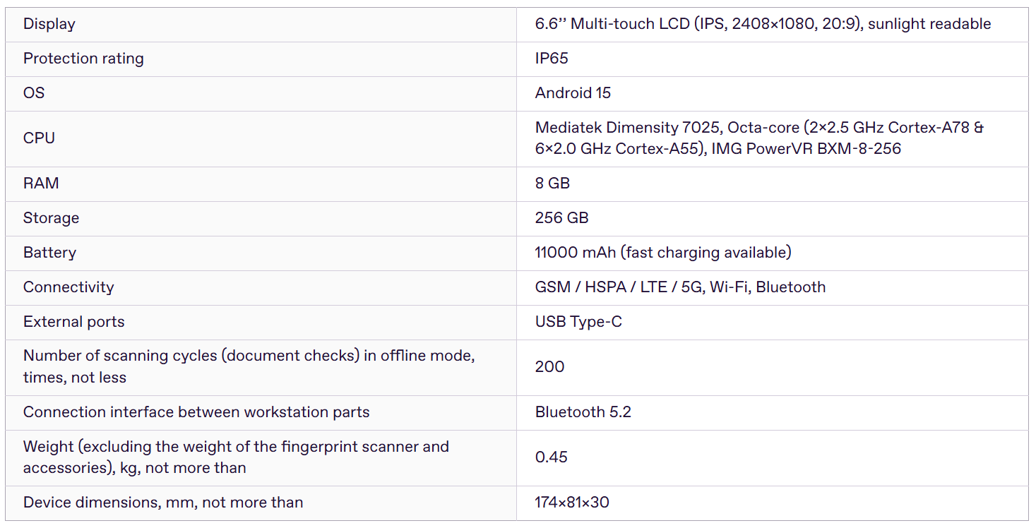 A 108 MP main camera and 8 MP IR camera capture high-resolution images in white, IR, and UV light. Optimized colour rendering ensures lab-quality UV images even in ambient light, while improved algorithms prevent IR overexposure—delivering workstation-level document verification in the field.