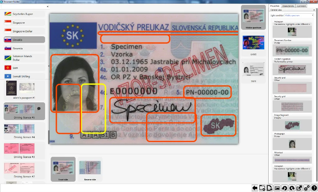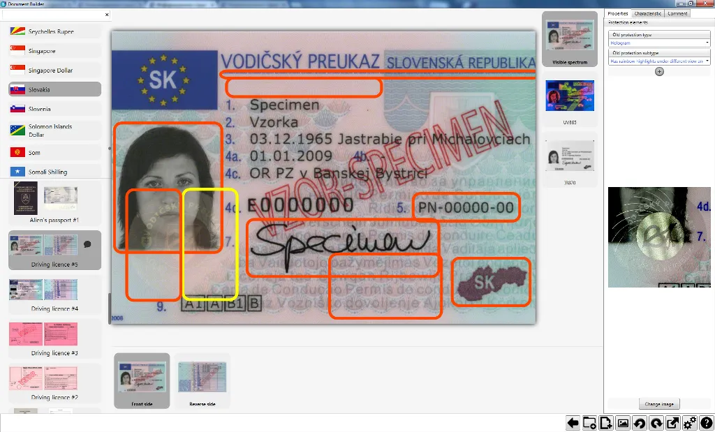 Information reference system Autodocs by Regula contains images of documents, their security features and printing techniques with detailed descriptions: