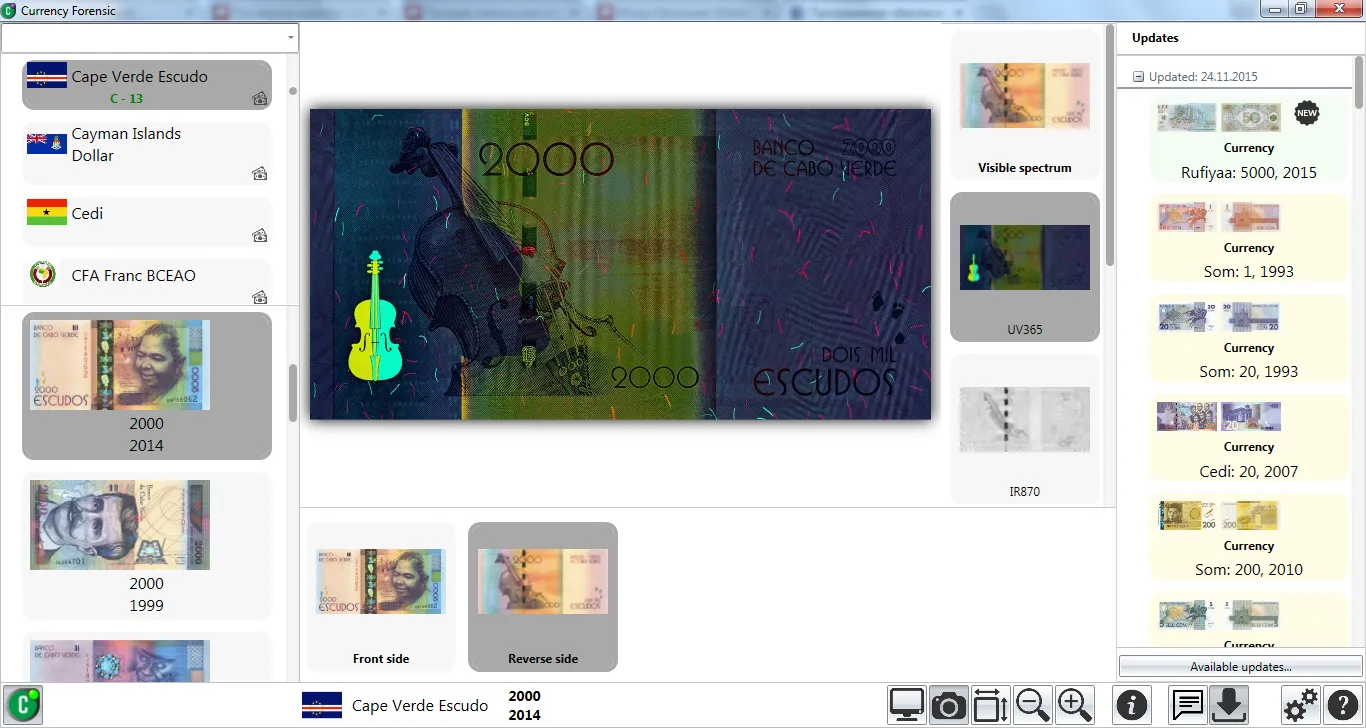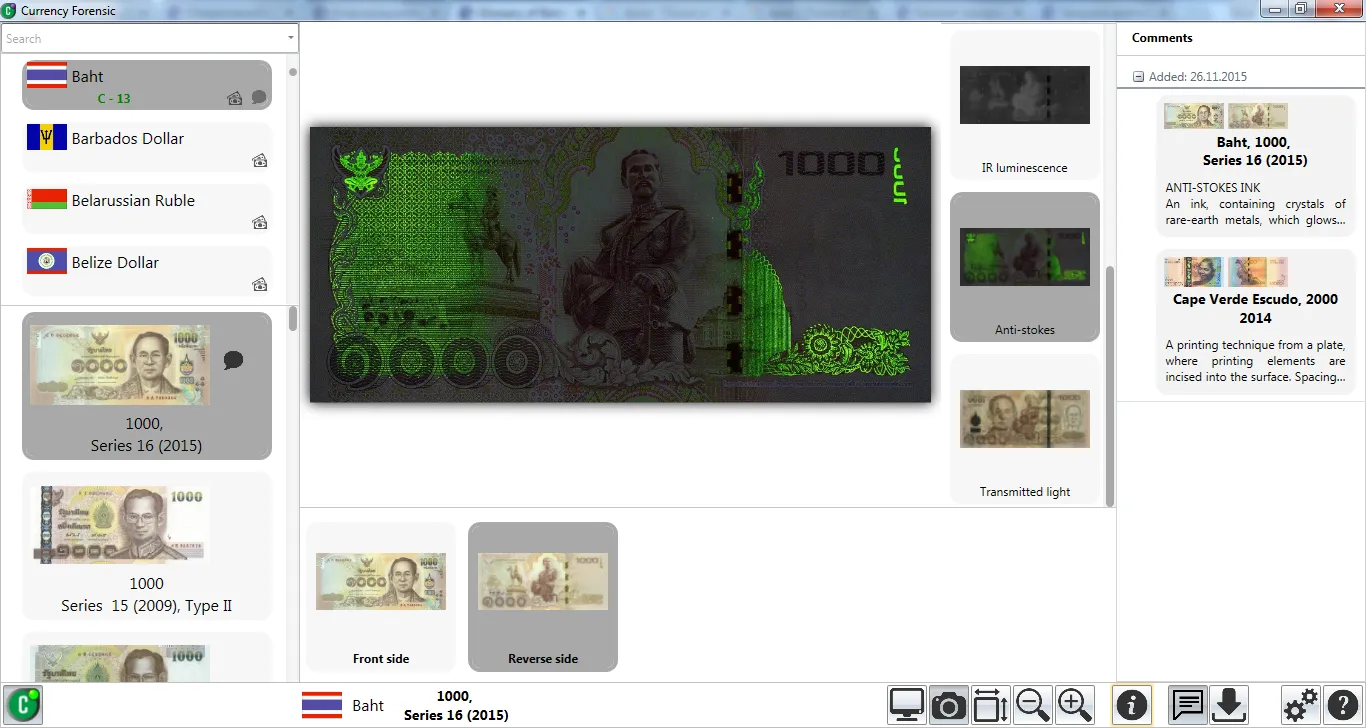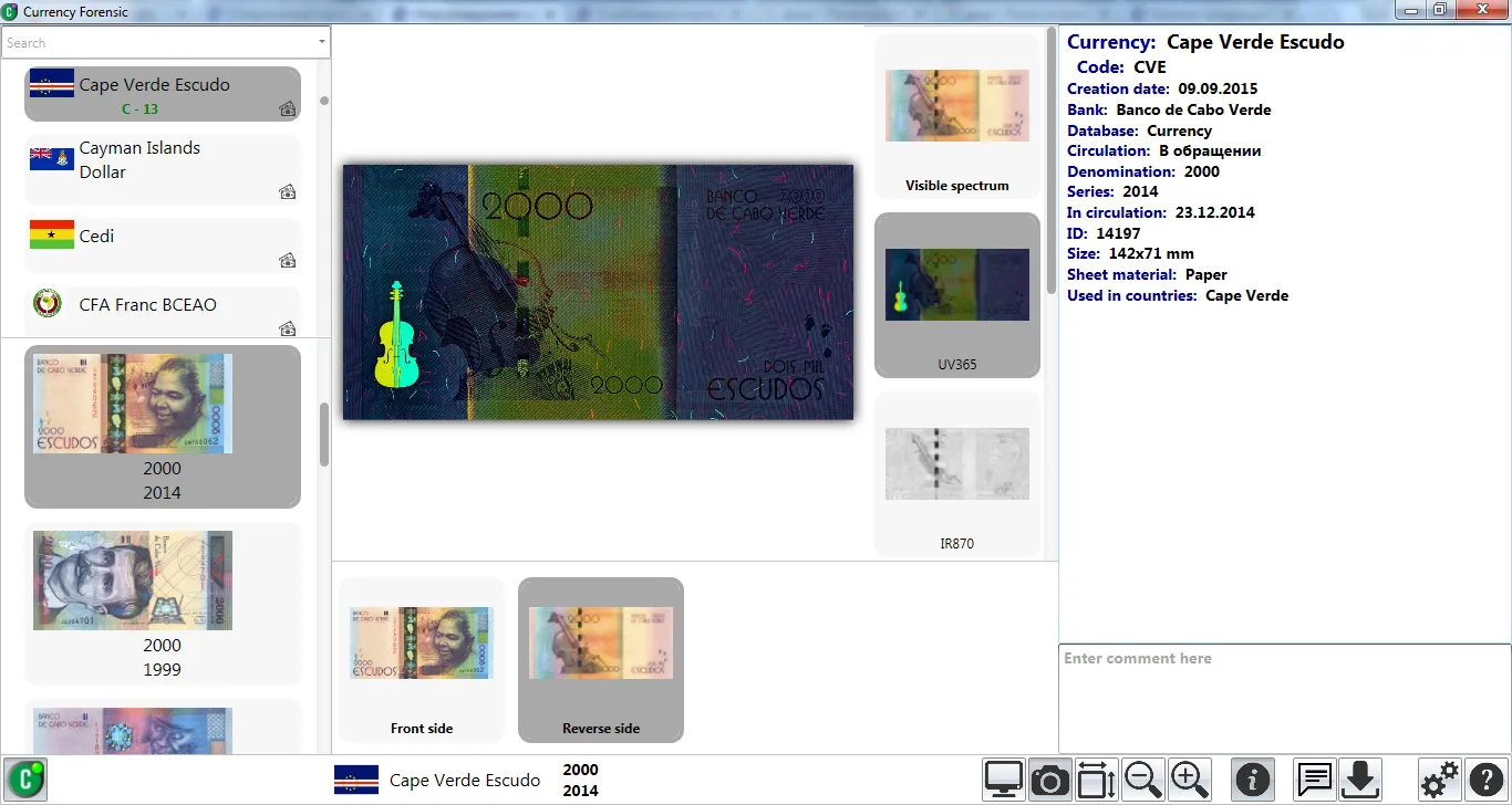The Regula IRS currency database contains images and detailed description of banknotes from different countries that differ in series and denomination. Borderless access to more than 7500 banknotes and coins. In total there are 201 currencies arranged by country and series.