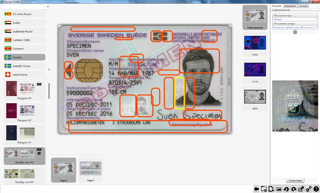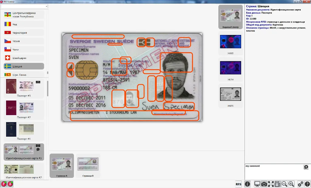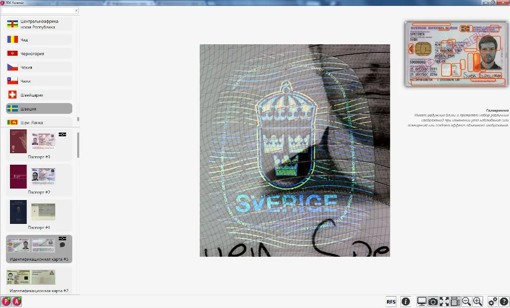 Information reference system Frontline Document System by Regula contains images of documents, their security features and printing techniques with detailed descriptions:
