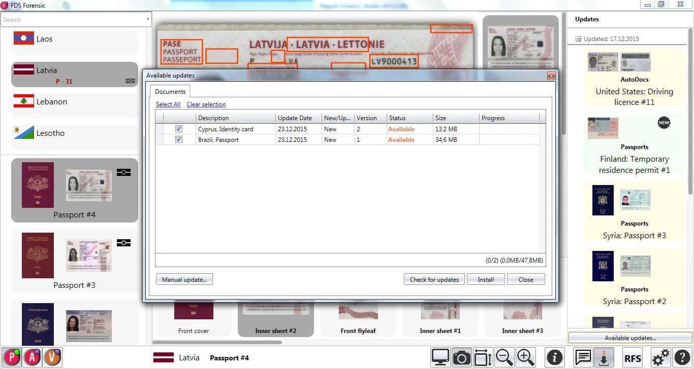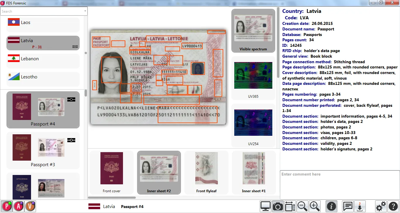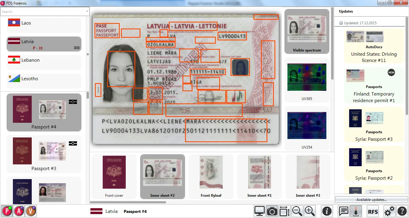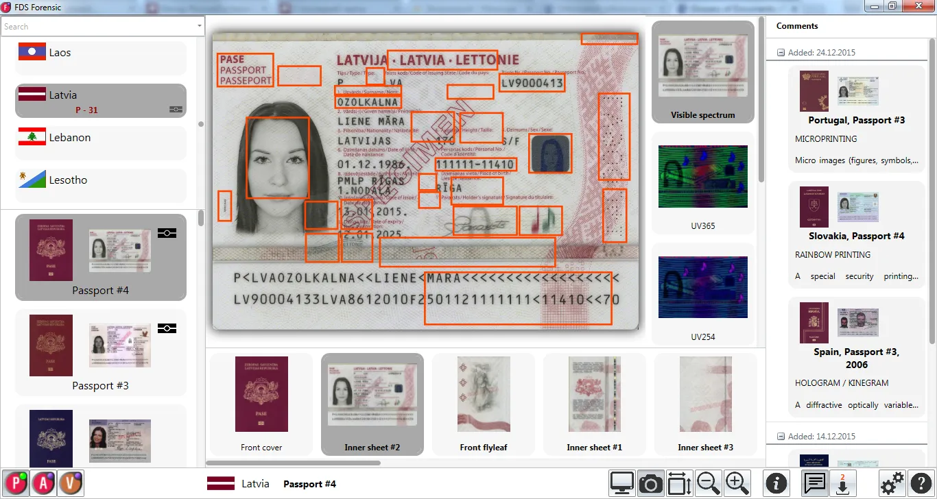 Information reference system Passport by Regula contains images of documents, their security features and printing techniques with detailed descriptions:
