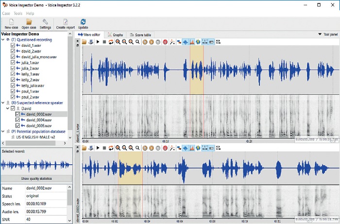 Voice Inspector software utilizes an extremely accurate voice biometrics engine to automatically compare speakers’ voices and identify multiple speakers in recordings.